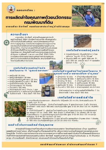 Page 129 - ถอดบทเรียนแนวทางการผลิตที่เป็นเลิศ 21 ชนิดพืช : เผยแพร่ในวันครบรอบสถาปนา 61 ปี วันที่ 23 พฤษภาคม 2567 ภายใต้หัวข้อ “พัฒนาที่ดิน เกษตรกรทำกินอย่างยั่งยืน"