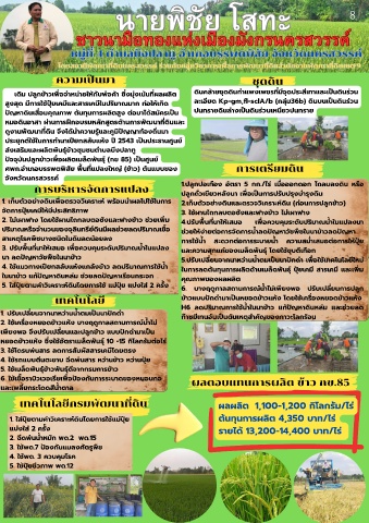 ป จจุบันปลูกข้าวเพื อผลิตเมล็ดพันธุ์ (กข 85) เป นศูนย์
