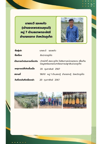 ข้อมูลพร้อมถอดบทเรียนการปลูกสับปะรดภูเก็ต