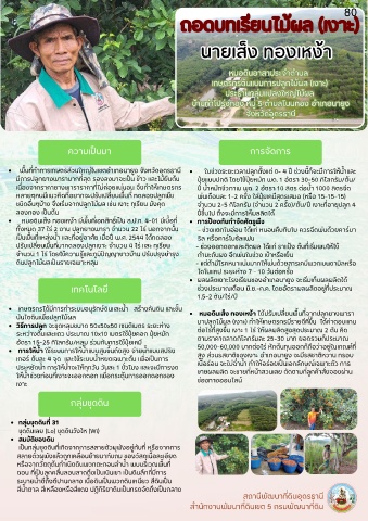 จํานวน 1 ไร โดยใช ความรู และภูมิป ญญาชาวบ าน ปรับปรุงบํารุง กํามะถันผง ฉีดพ นในช วง เช าหรือเย็น